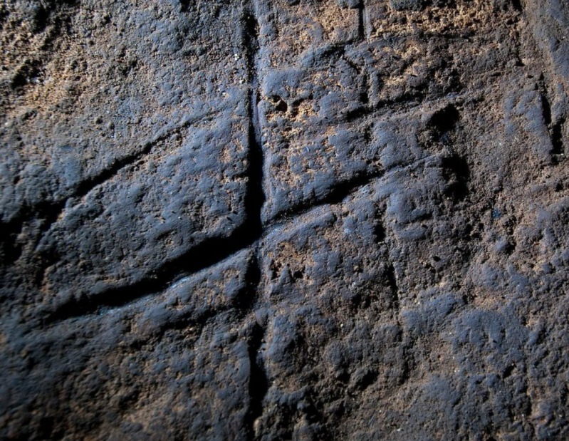 Furthermore, Berger et al. concluded that the burial chamber, tomb, or catacomb entrance had been marked with an unknown language or art that was geometric in shape and not found around the same, ruling out natural geometric shapes that could have otherwise explained away the same, very much resembling interconnected hashtags, number signs, and/or a pattern that could theoretically but not practically be drawn out and interconnected and for infinity, and fractal in nature. Another interpretation of this art or these markings by Christians could readily be interconnected crosses, but hundreds of thousands of years before Jesus and the employment of crosses for crucifixion.