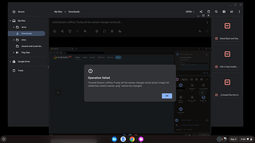 We have also experienced errors in transferring files, and some of our files have been corrupted and won't open, and others were supposed to be PDF files, and within the image view of our files, we accidentally discovered Linux executable files (malevolent software that replaced our pdf file), so that if the same was ever opened a very likely harmful computer code would start. We lose about a computer a year to cyberattacks, and so it isn't easy for U.S. law enforcement, journalists, university professors, whistleblowers, activists, victims, or anyone to investigate Jeffrey Epstein's organized crime syndicate, because they largely own, control, and share the intelligence, communications, news, social media, email, and marketing infrastructure, to serve as (1) an early warning system and obstruction of justice weapon for those investigating them, (2) to further their crimes against children and those investigating them, and (3) to be able to influence others with misinformation that they are the heroes and victims and those investigating them are the radical villains -- as an ongoing crime syndicate linked to child sex crimes would want to do and need to do in order to avoid prosecution and to be able to further their ongoing crimes.