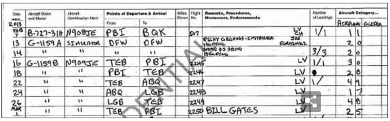 Here is a copy of a page out of Jeffrey Epstein's flight log or "business" operations, naming Bill Gates as having flown with Epstein, in the context that Jeffrey Epstein's child sex trafficking "business" operations also occurred on flights, where child rape sex parties occurred on Jeffrey Epstein's flights, far from the intervention of authorities, which Epstein learned from Jeffrey Epstein's Donald Trump's Attorney General William Barr's father - Donald Barr - who is who hired and groomed Jeffrey Epstein at Dalton school for children without teaching credentials, and who (Donald Barr) wrote a child rape space colony fantasy known as "Space Relations", where the global elite could rape children away from the authorities, which is exactly what Jeffrey Epstein did on his infamous flights known as the "Lolita Express", which Bill Gates flew on as follows, on at least March 1, 2013.[3][4]