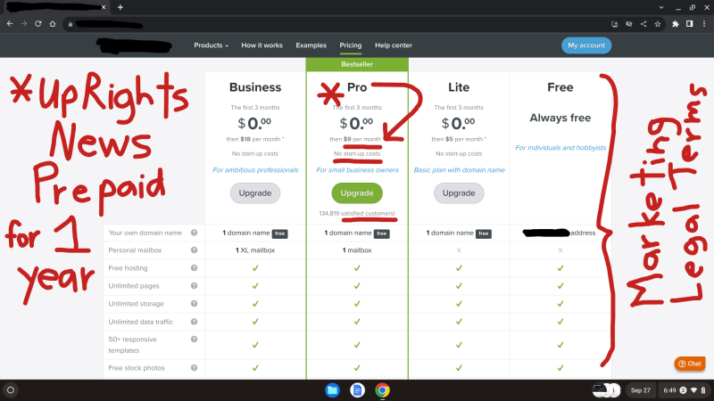 As specified above and below, the web host for UpRights News marketed some of their different the legal terms for different website packages.