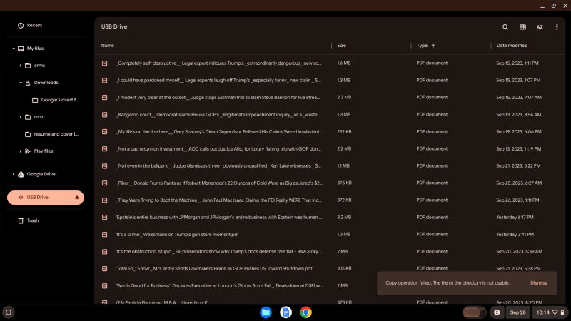 Here's the evidence Google also won't allow us to transfer our files off of this Google Chrome computer, and so there is definitely something in these files that Google does not want others to learn about, and we know what it is! Here's a hint, what rhymes with Jeffrey Epstein's ongoing organized crime syndicate?