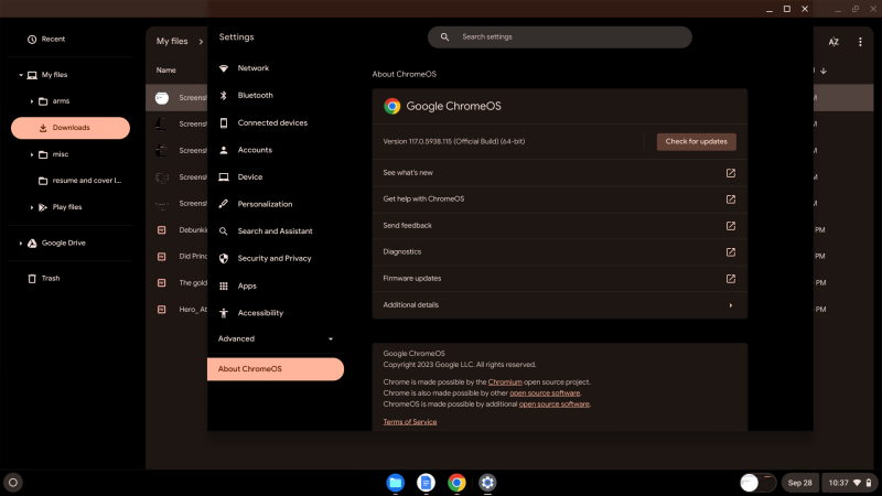 The following proves that our computer is a Google ChromeOS (see orange tab).