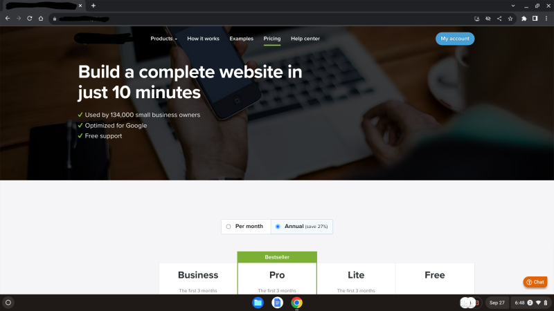 By default, this web host recommends its "Bestseller", the "Pro" package, which is an abbreviation for "Professional Website Package", and this is one of the three out of four paid packages offered by this website hosting and development company, with only one of the packages being "free".