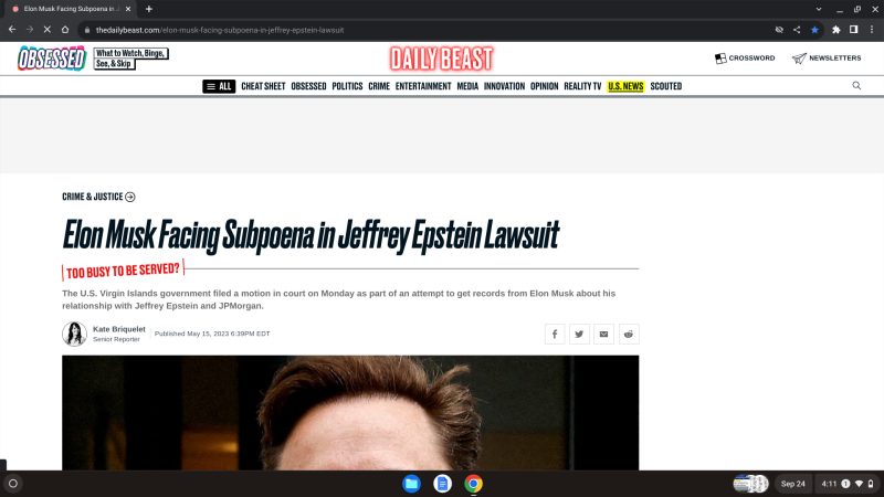If all of JPMorgan's and Jeffrey Epstein's business transactions were linked to (child) sex trafficking, as the U.S. Virgin Islands' Attorney General's Office's attorney specified, and if that same office knowing the same subpoenaed, and/or sought to subpoena Leon Black, Elon Musk, and the founders of Google, then it is a reasonable inference that this implicates them all in Jeffrey Epstein's (child) sex trafficking operations, which the U.S. Virgin Islands' Attorney General's Office's was focused on.
