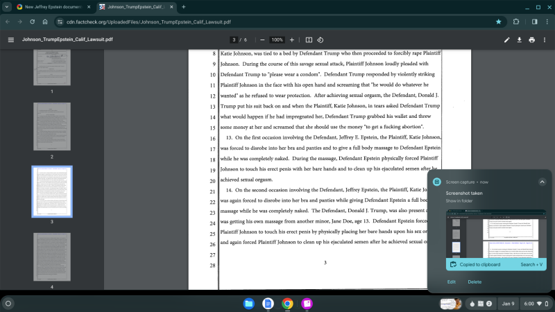 Before getting into how some of the recent Jeffrey Epstein documents link to the origins of Crossfire Hurricane, Katie Johnson sued Donald Trump for repeatedly raping her and/or Maria Doe (who may or may not be Maria Farmer) as children, when they were 13 and 12 years, and sex trafficked to Trump by Jeffrey Epstein, per the lawsuit, also found at https://cdn.factcheck.org/UploadedFiles/Johnson_TrumpEpstein_Calif_Lawsuit.pdf.