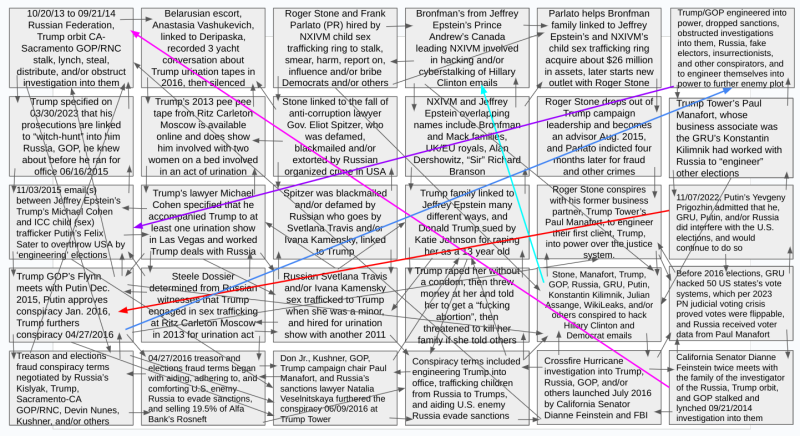 This next diagram expands out how Mike Johnson, Trump, the GOP, Jeffrey Epstein's crime syndicate, Russia, and others conspired to overthrow the United States, to control the legal landscape, and how they are extensively linked to pedophiles, pedophile networks, and plots and attempts to overthrow the United States.