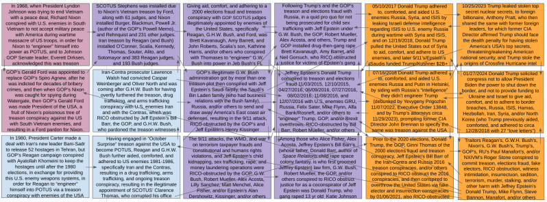 A picture is worth a thousand words, and so what our news sections links above specify in the sections named (1) Epstein's "Commonwealth", (2) Illegitimate Power, and (3) Crossfire Hurricane Origins, but not limited to the same, is that the Republican Party, Trump, and several overlapping and known child sex trafficking rings, have repeatedly conspired to overthrow the United States in order to remain in control of the legal landscape, and have manufactured domestic and international terrorism events in order to help them do the same.