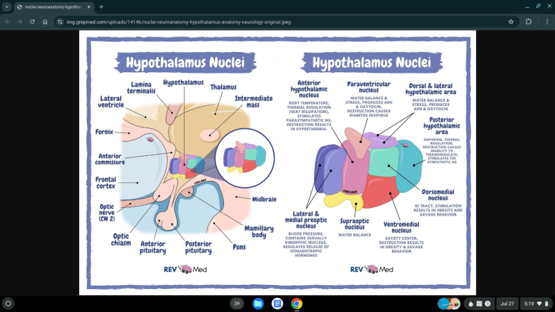 This satiates or meets the "need" of our ventromedial nucleus or "crave", want, need, and/or desire center, and then the need is met or satisified and we feel "happy", triggering our "chill complex" or relaxation part of our hypothalami, the parasympathetic anterior hypothalamic nuclei, the darker pink section above.