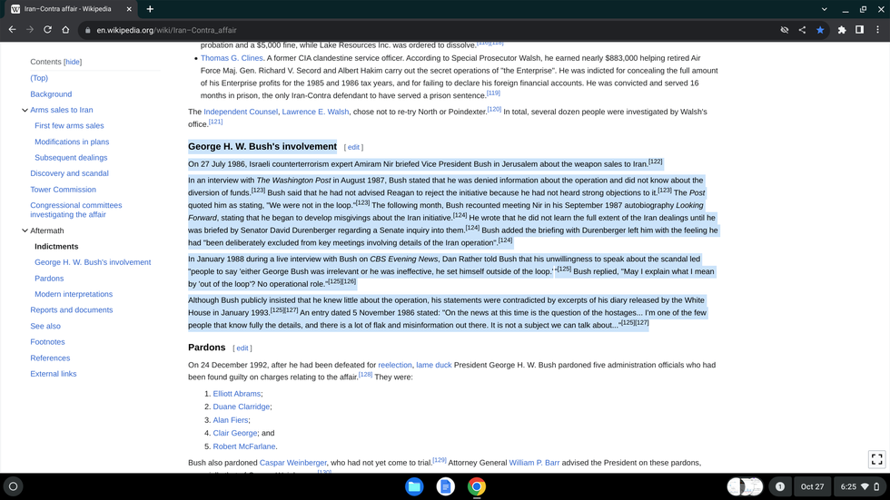 And yet the man who hand-picked Clarence Thomas in a conspiracy with Jeffrey Epstein's David Koch's Federalist Society, G.H.W. Bush - whose father, Prescott Bush, was a traitor with the Nazis in WWII - was knowingly involved in the Iran Contra treason conspiracy, but lied about the same to not be impeached to be able to illegitimately install Clarence Thomas in an illegitimate manner thereafter, who has proven time and time again that he (Thomas) cannot be trusted with the public's trust, and regularly violates bribery laws, is what reporting over the last two years has repeatedly proven.