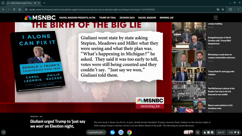 Furthermore, it was Rudy Giuliani of the GOP's 9/11 who urged Trump to echo chamber "just say we won", after Trump was voted out by America, per Phil Rucker of the New York Times and Carol Leonning in their new book, I alone can fix it -- and so Trump knew as early as elections night that he hadn't won, but was told by Giuliani to lie to America and to say that he had won the 2020 elections, knowing he had not, and he has been lying to the public ever since, with the occasional lapse as on Fox News. Accordingly, there is ZERO doubt that Trump new he had lost the 2020 elections BEFORE his sedition, insurrection, obstruction of Congress, fake electors, and/or stolen/concealed documents disqualifying crimes