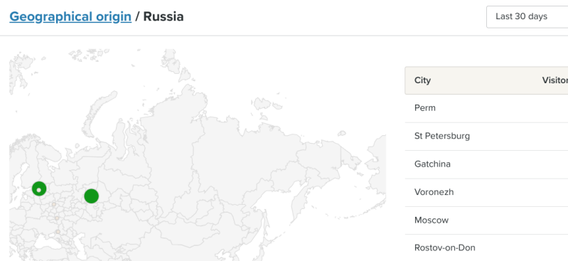 This update has elucidated a return of someone from Gatchina, Russia cyberstalking our reporting in California.